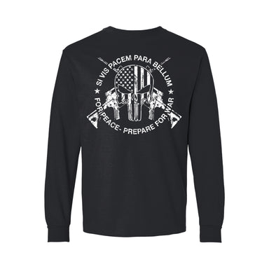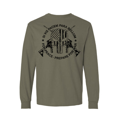 Subdued Distressed Dark Ink print on Longsleeve Si vis pacem, para bellum is a Latin axiom translated as, “If you want peace, prepare for war”. ...