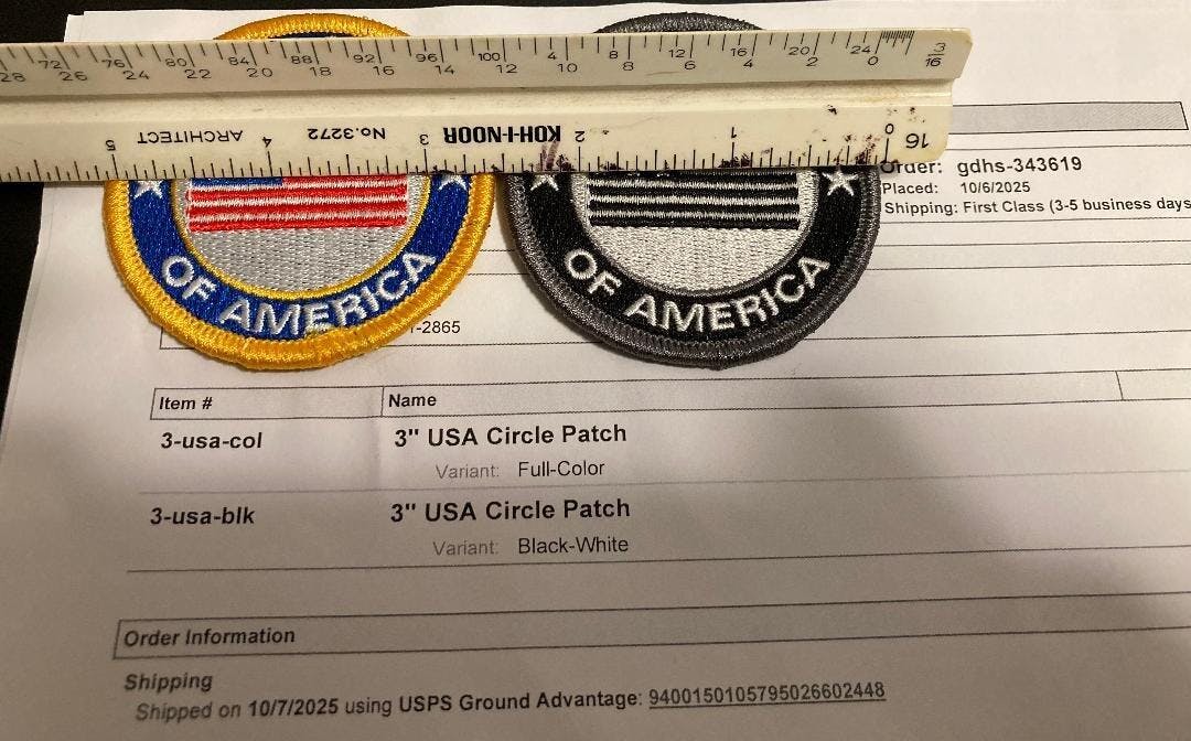 Gadsden and Culpeper, 3" USA Circle Patch are NOT 3" dia, they are only 2.5" in diameter. I mentioned this to their customer service, their snide reply was "We rounded up, I guess just like 2x4 lumber isn’t 2x4". Kind of like I should have known that when there is no mention of the difference in size on their web page. This is false advertising & misleading.